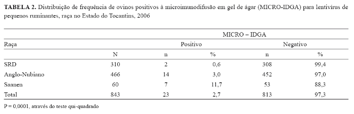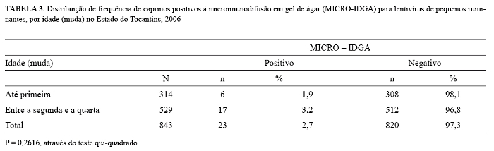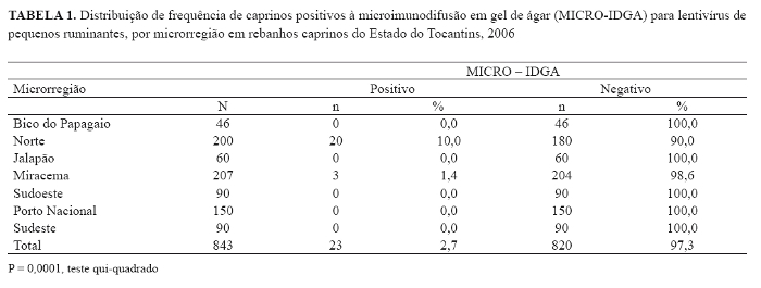 KEY WORDS: Brazil, CAEV, epidemiology, microimmunodiffusion.