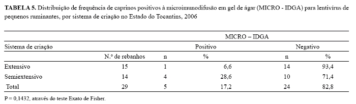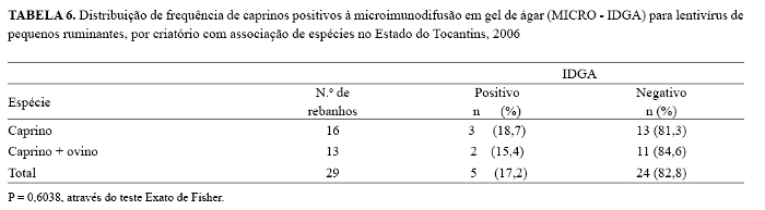 PREVALENCE AND ASSOCIATE FACTORS TO THE INFECTION FOR LENTIVIRUS OF SMALL RUMINANTS IN CAPRINE OF TOCANTINS STATE, BRAZIL