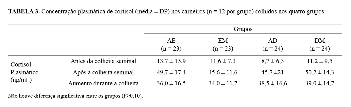 do nível de cortisol após as coletas (P>0,05). No entanto, houve