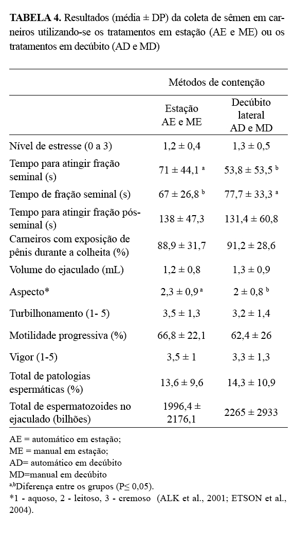diferença entre indivíduos (P<0,05). As coletas de sêmen nos animais