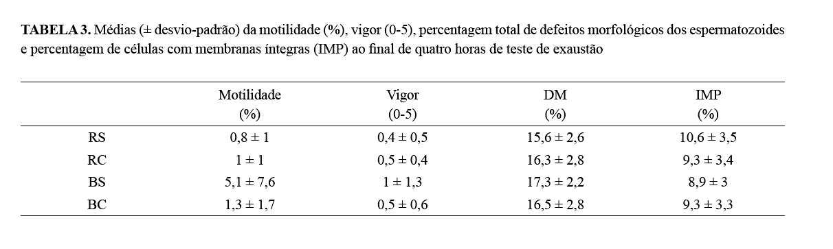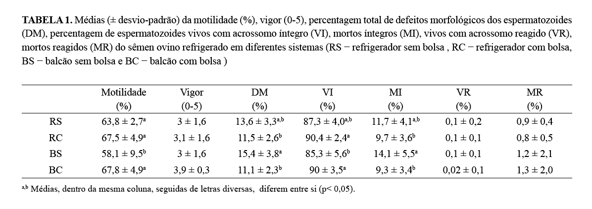 diferença na motilidade espermática (P<0,05), em que BS apresentou