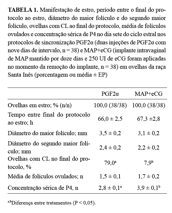 protocolo ao estro e taxa de ovulação, não se observaram diferenças