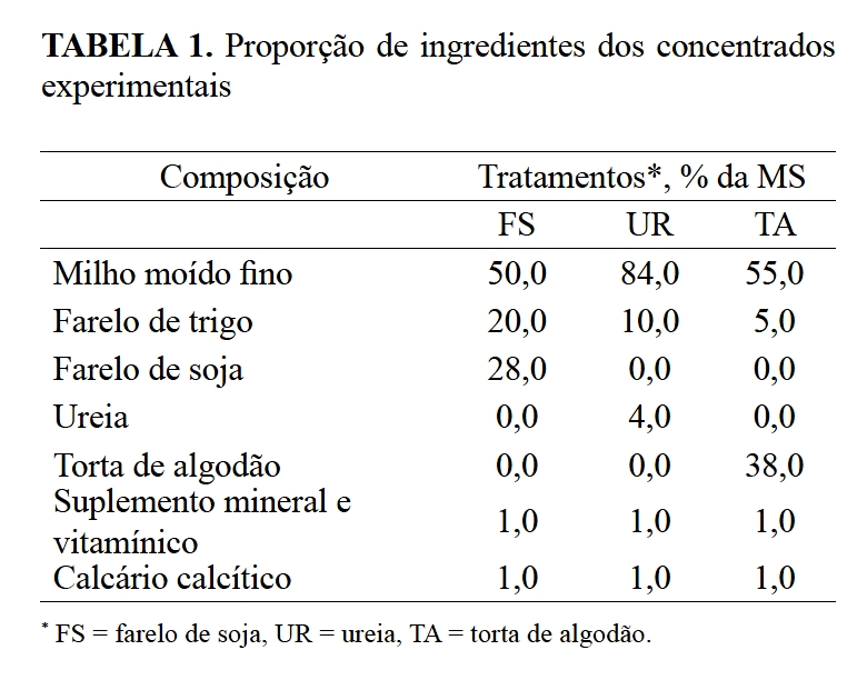 irrigada, recebendo suplementos com diferentes fontes proteicas. Foram