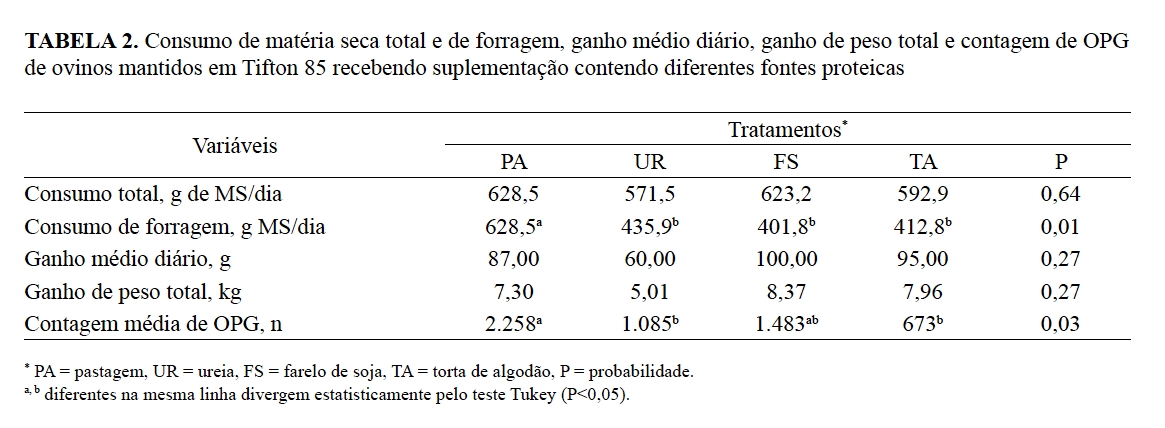 KEYWORDS: Cottonseed meal, Cynodon dactylon, endoparasites, Famacha©, soybean meal, urea.