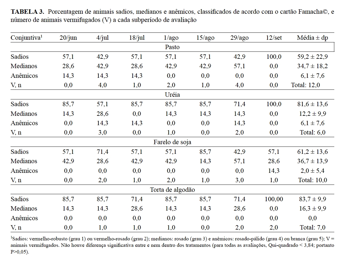 PALAVRAS-CHAVES: Cynodon dactylon, endoparasitas, Famacha©, farelo de soja, torta de algodão, ureia.