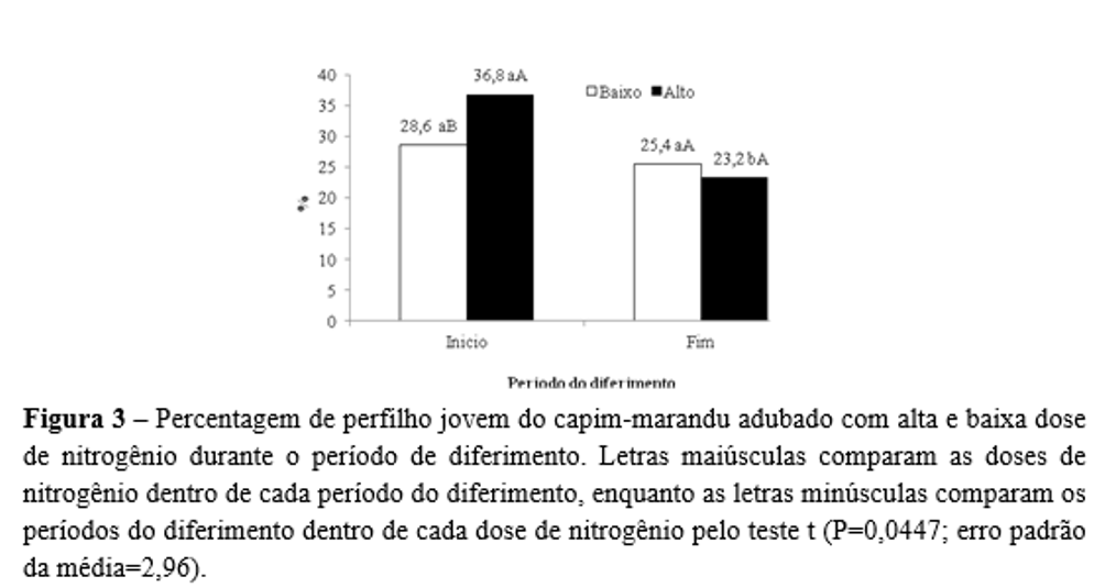 de perfilho jovem (36,8%) do que aquele sob baixa dose de N (28,6%). No
