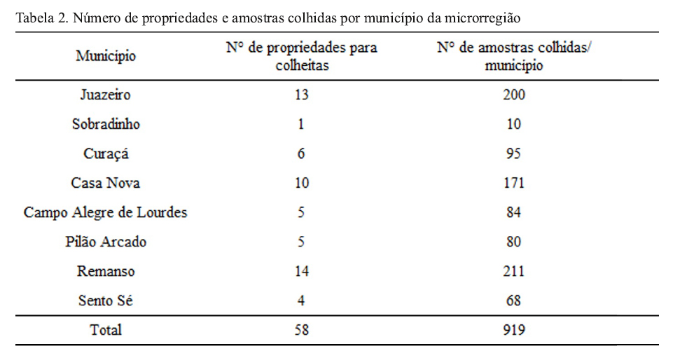 (MV) in sheep herds in the microregion of Juazeiro, Bahia, 919 serum
