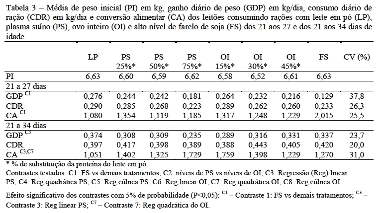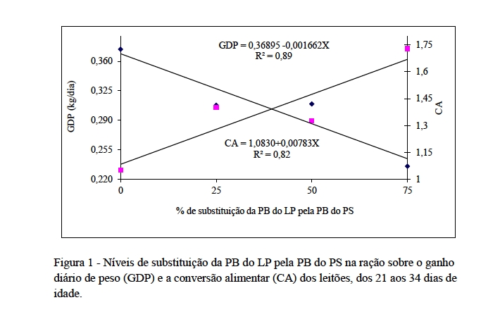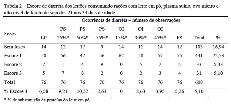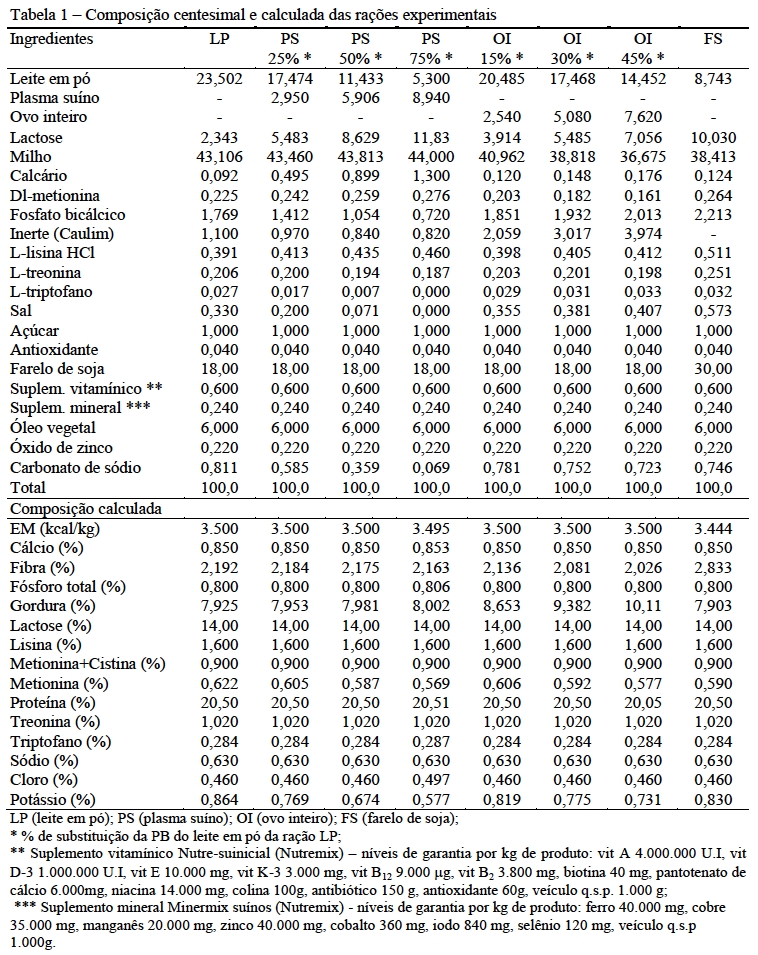 pesquisa mostraram que as rações contendo lactose e proteínas de origem