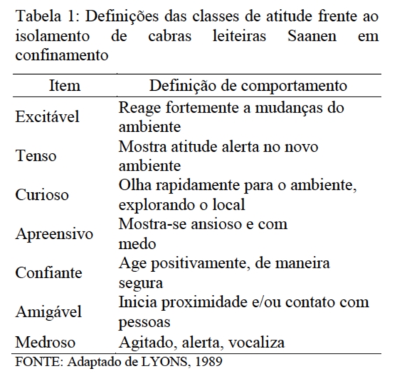temperamento de cabras leiteiras Saanen, a partir do agrupamento de classes de