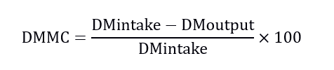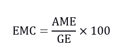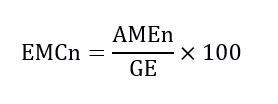 Equations described by Matterson et al.(17) were applied to determine the values of AME and AMEn. For DMMC, EMC, and EMCn, the followings equations were used:
