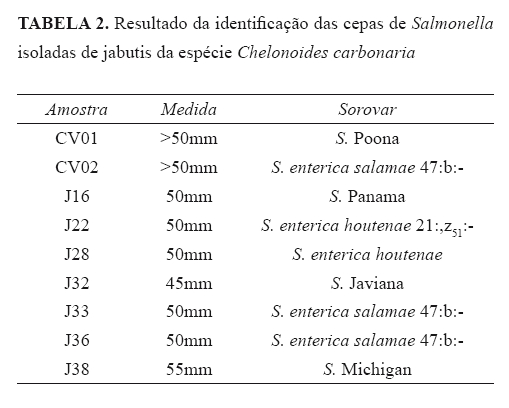 Salmonella em jabutis da espécie Chelonoidis carbonaria, dada a elevada
