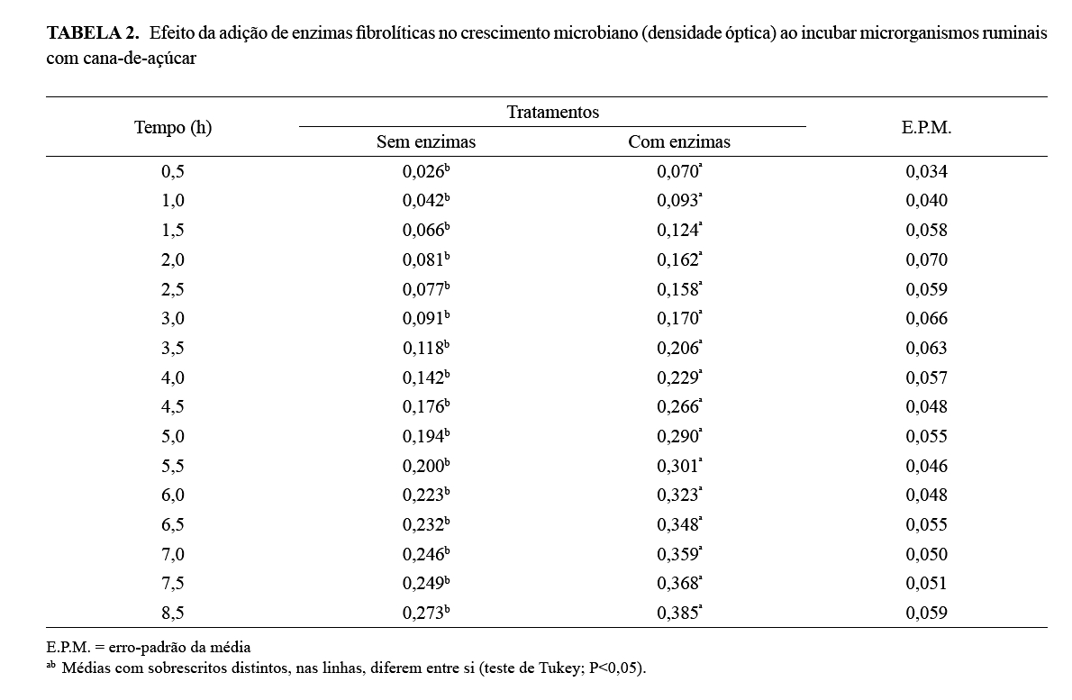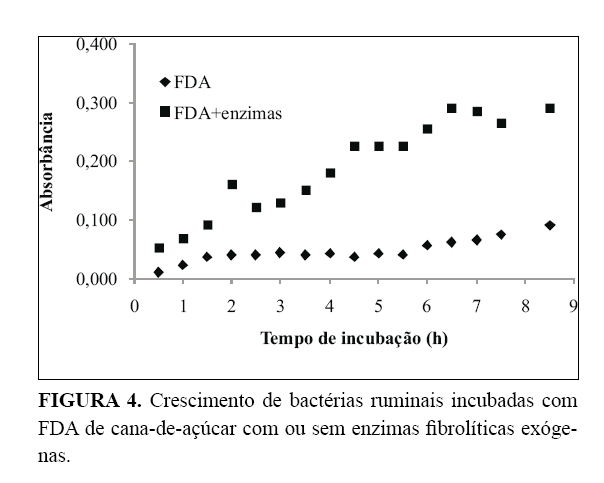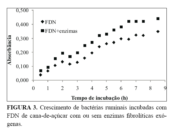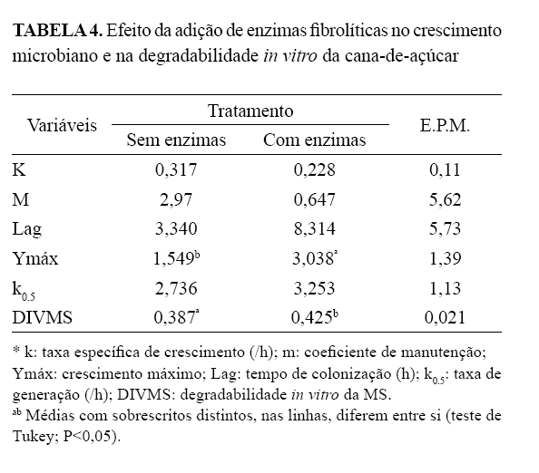 enzimas fibrolíticas aumentou o crescimento microbiano máximo e a
