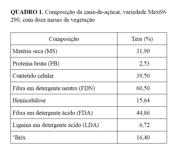 cana-de-açúcar (variedade Mex69-290) em fibra em detergente neutro