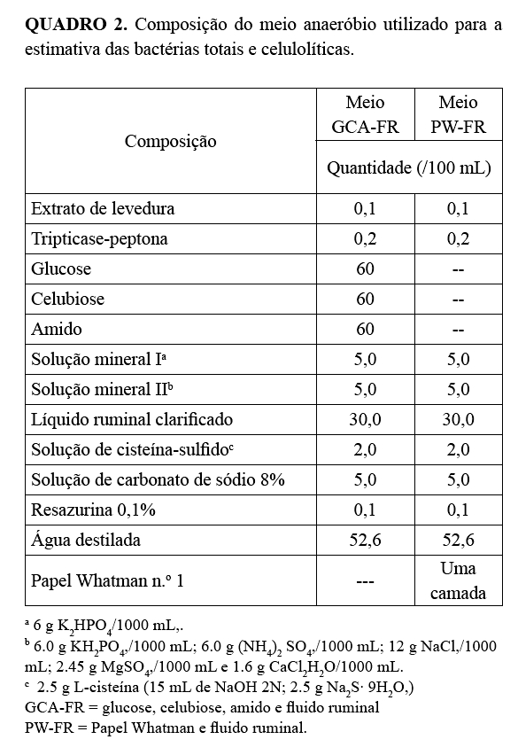 Quadro 1), assim como de suas frações fibrosas extraídas com detergentes neutro e ácido (respectivamente FDN e FDA) (VAN SOEST