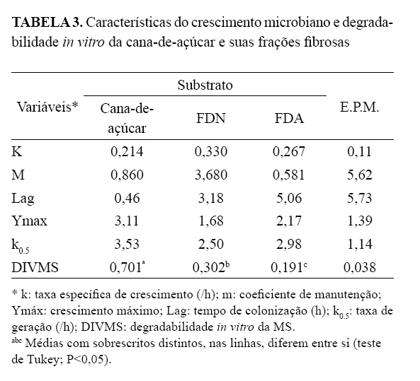 suas fibras. A degradabilidade in vitro foi de 0,701, 0,392 e 0,191,