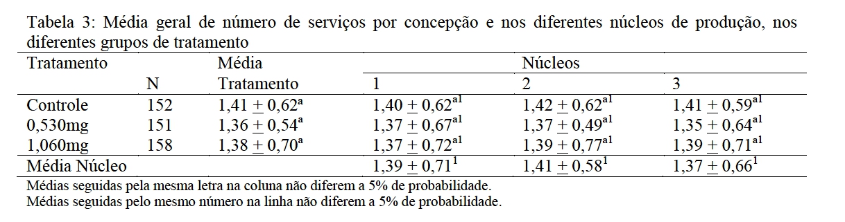 diferenças no número de serviços por concepção nos três grupos (P>0.05). A
