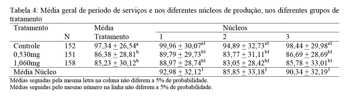diferença no desempenho reprodutivo dos animais que receberam as diferentes