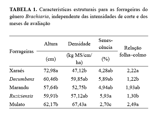 estruturais dos capins marandu e xaraés submetidos a intensidades de pastejo. Revista Brasileira de