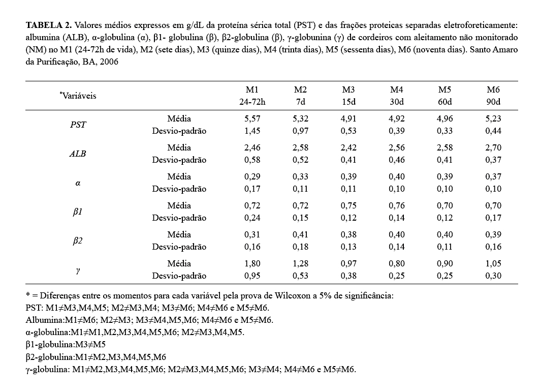 imunidade passiva, gamaglobulinas, período neonatal, proteínas séricas.