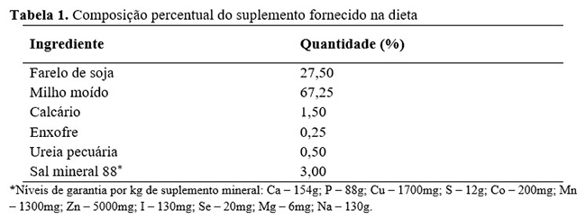Os animais foram mantidos em pastejo contínuo, recebendo diariamente suplementação concentrada (Tabela 1).