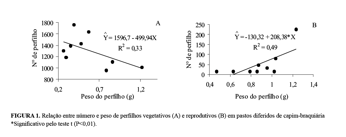 Pela comparação entre perfilhos vegetativos e reprodutivos,