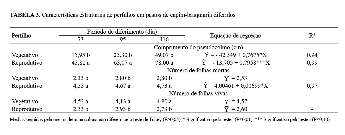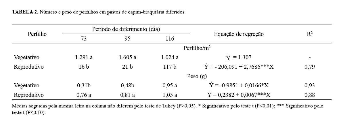 pelo período de diferimento. Com relação aos perfilhos reprodutivos,