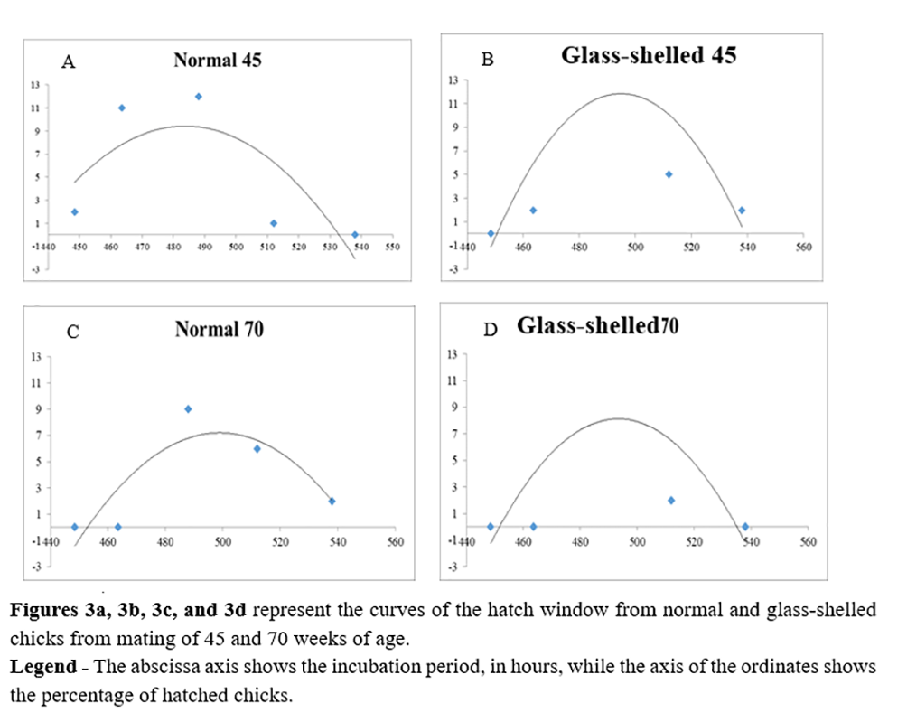 No difference was observed between the hatch window of embryos originating from glass-shelled and normal eggs (Figures 3a, 3b, 3c and 3d).