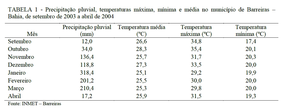 Barreiras, Bahia (12º05’ lat. S; 45º20’ long. W), região fisiográfica de cerrados, área que vem apresentando grande