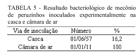 intestinal pelo patógeno ocorreu em peruzinhos oriundos da inoculação