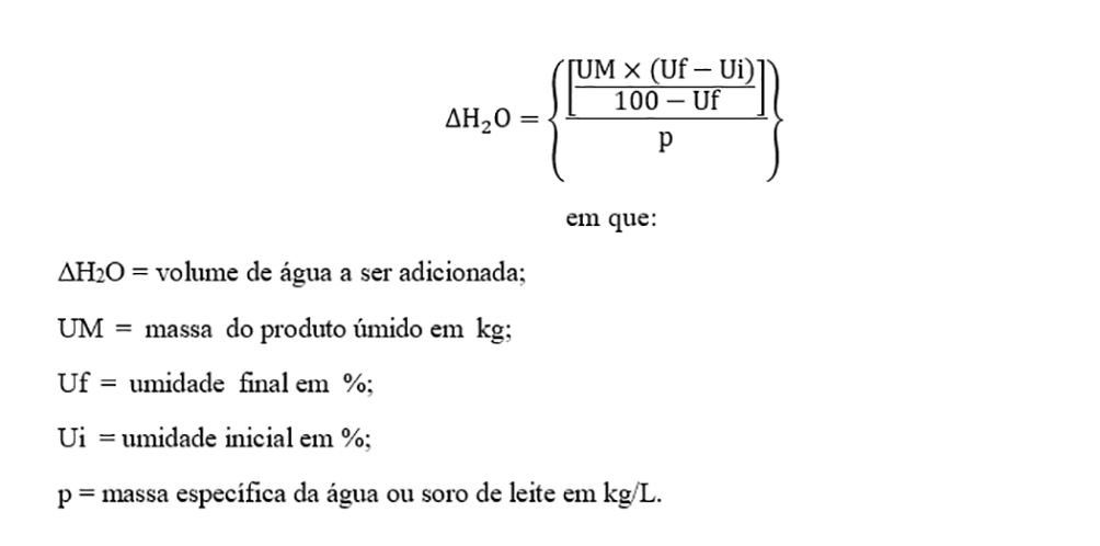 em substituição ao milho reidratado e