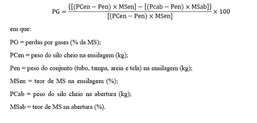 para produção de silagem). A produção de gases da silagem com