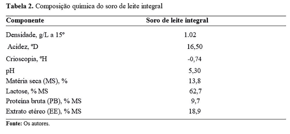 ou soro de leite associado a diferentes níveis de inclusão do resíduo de