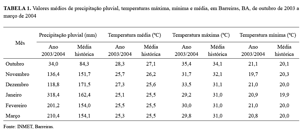 do ano. O experimento foi realizado em Barreiras, BA, sendo delineado