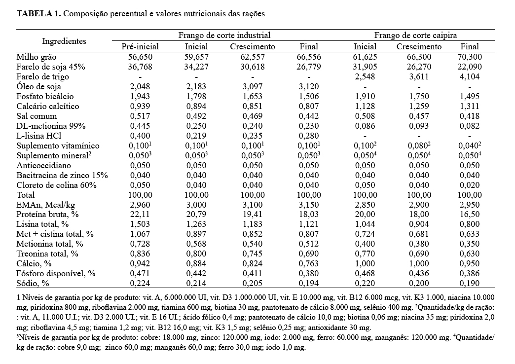 para os frangos industrial e caipira revelaram que essas aves tiveram