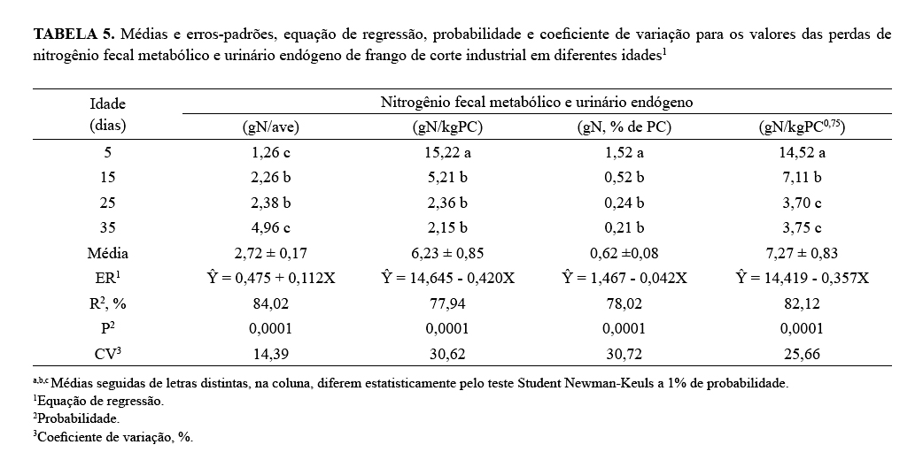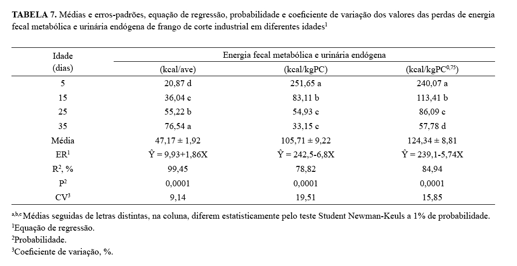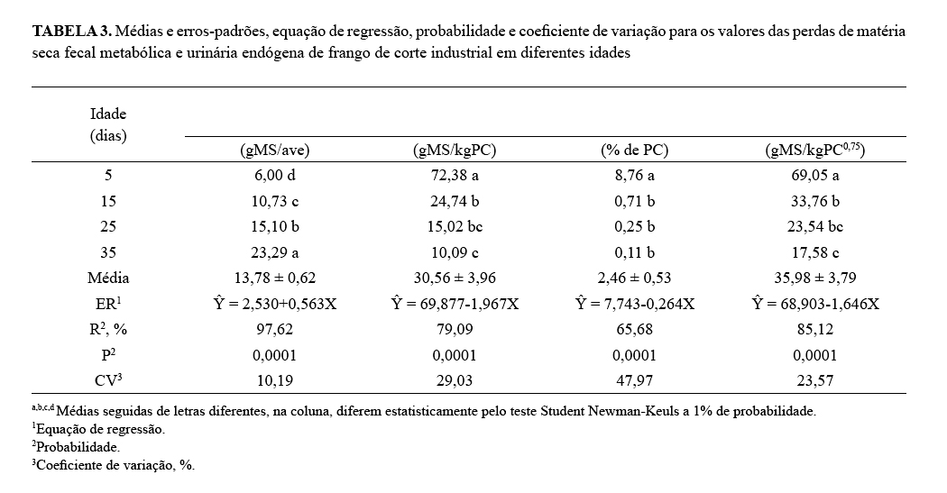 das perdas endógenas e metabólicas em frangos de corte. Revista Brasileira