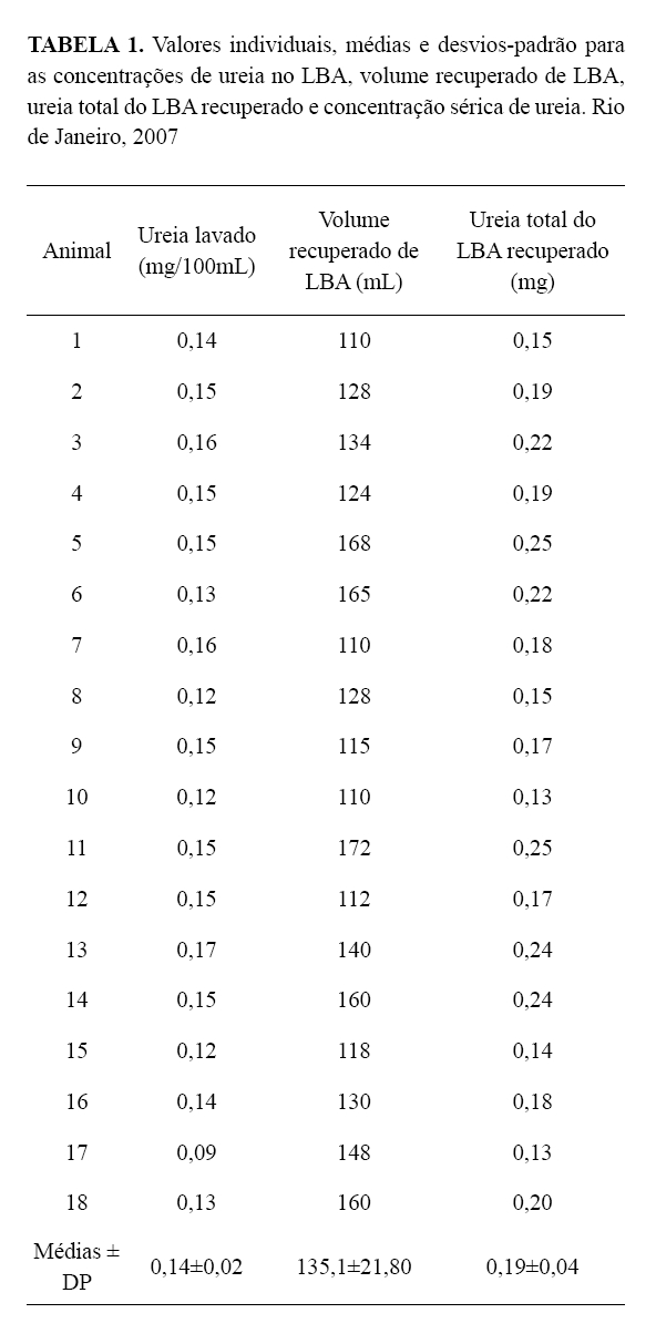 adultos. A partir de concentrações conhecidas de ureia no LBA de