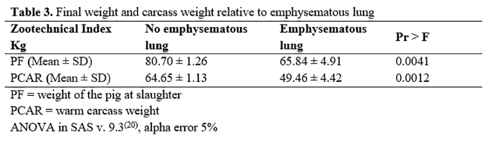 Respiratory diseases are a critical issue in intensive pig rearing(1). Confined populations are subjected to an environment that may be stressful and reduce immunity, contributing to the occurrence of respiratory disease(2). Pneumonias result in low zootechnical indices, high pharmaceutical costs, and carcass condemnations at the slaughterhouse, where, in Brazil, approximately 50% of animals present some type of lung injury, with these lesions accounting for 50% of all carcass condemnations(3). The more intensive the management system, the higher the costs of production(4).