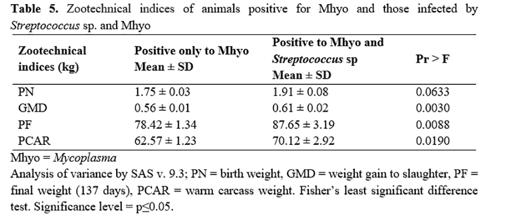 lesions were evaluated, and zootechnical indices were recorded. Mhyo