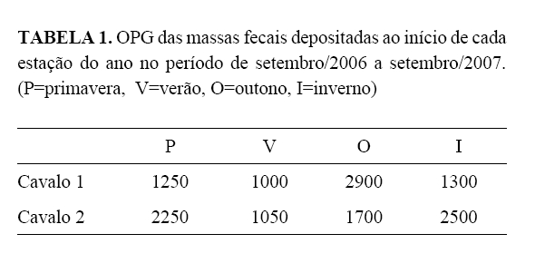 início de cada estação do ano, coletou-se 1 kg de fezes de cada animal