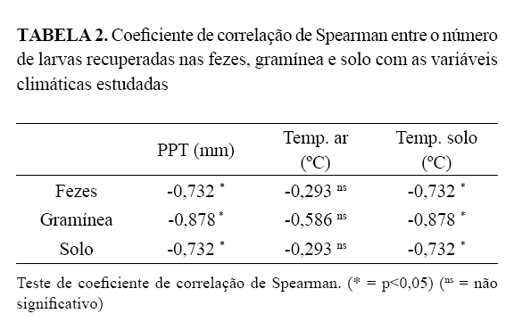 feces, pasture and soil, verifying the time of higher larvae recovery.