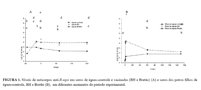The humoral immune response in ‘Brasileiro de Hipismo’ (BH) breed and Breton mares was compared after using the Rhodococcus equi vaccine,