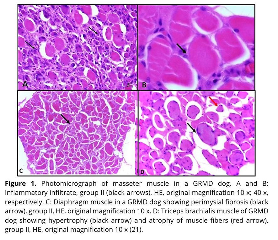 Keywords: Golden Retriever Muscular Dystrophy (GRMD); immunohistochemistry; inflammation; myopathy; muscle.