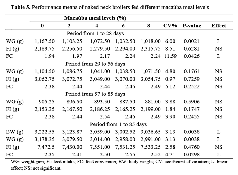do farelo de macaúba na dieta de frangos de pescoço pelado prejudica o