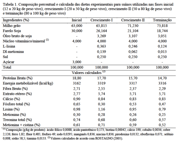 alimentados ad libitum até o abate. As dietas experimentais (Tabela 1)