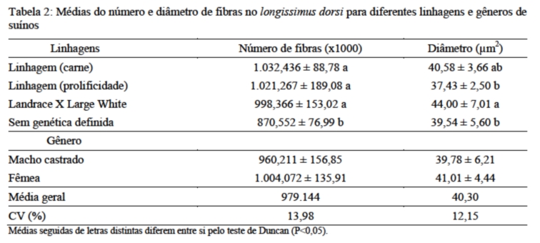 observada diferença (P>0,05) para o número de fibras no músculo longissimus dorsi, concordando com