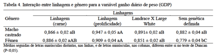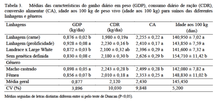 cruzamento Landrace x Large White não diferiram das demais linhagens