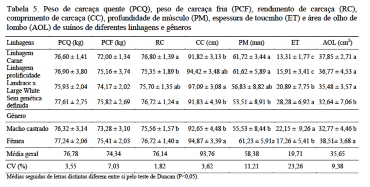 quantidade de carne magra na carcaça. Os resultados apontam que animais com
