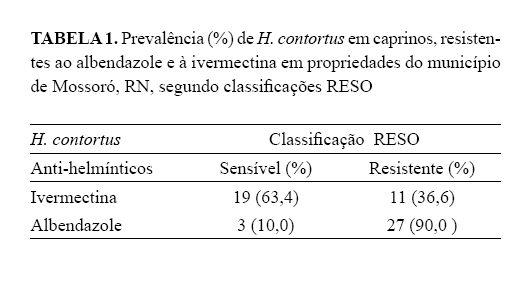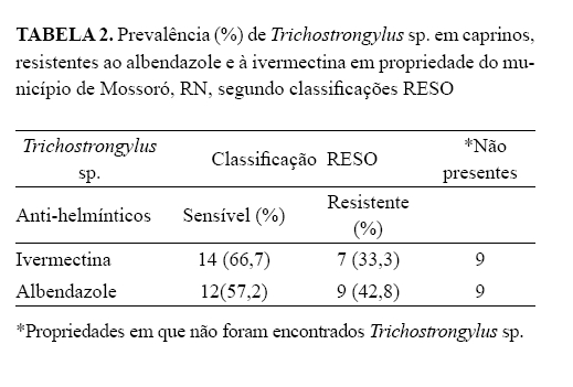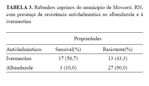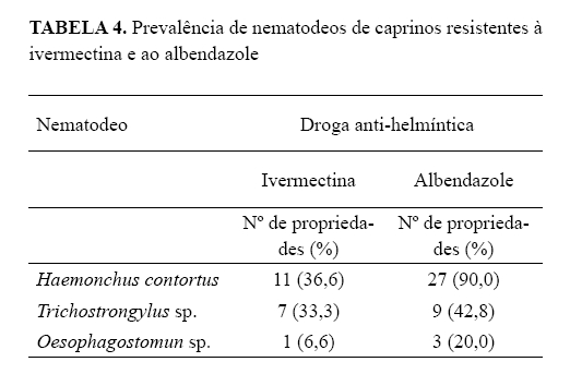helmintos resistentes à ivermectina foi de 33,3%, e ao albendazole de