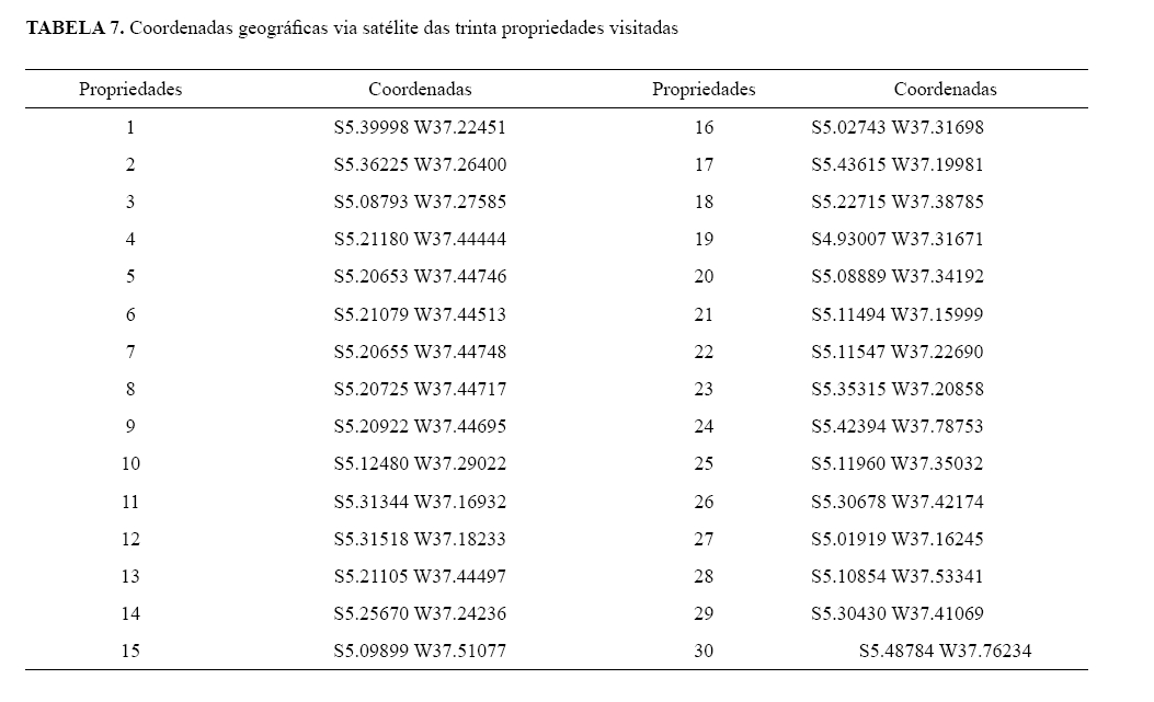 de caprinos em Mossoró, RN. Em cada propriedade, selecionaram-se 45