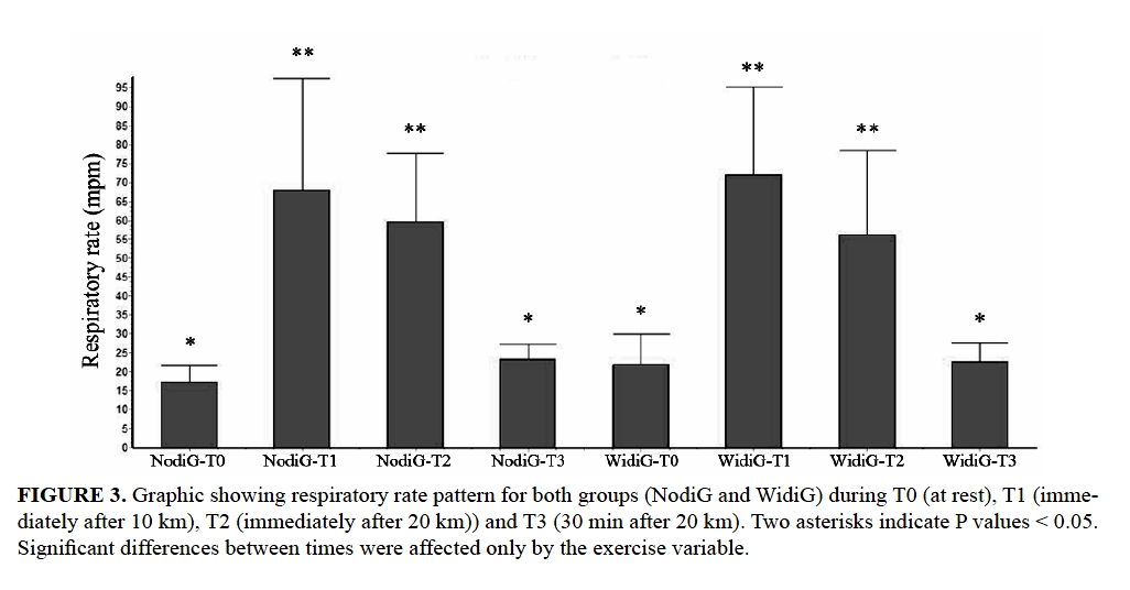 (T1), after 20 km (T2), and 30 minutes after the end of the exercise